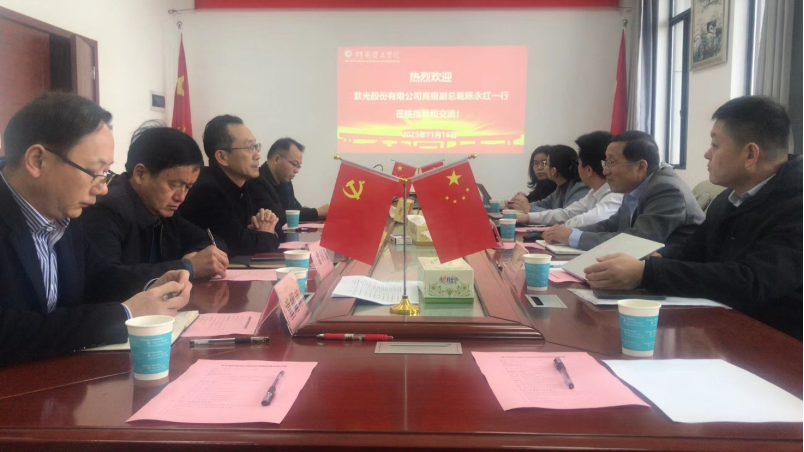 2023年11月16日下午,紫光股份有限公司高级副总裁、教育科技有限公司总裁陈永红,紫光新华三集团岳阳总经理曾经,紫光教育科技有限公司高级产品顾问刘学等一行5人来校洽谈产教融合合作事宜。座谈会在永利皇宫官方网站17517会议室召开,学校党委委员、副校长丁跃浇,教务处副处长周勇,信息中心主任曾利庆,物电、信息两个学院主要领导和相关骨干教师代表参加,丁跃浇副校长主持会议。