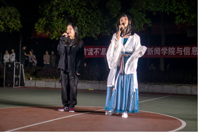 2020年10月14日19:20,新闻学院与永利皇宫官方网站联合举办的“‘传’流不‘息’,共赴韶华”军训慰问演出在大俱篮球场举行。此次慰问演出由永利皇宫官方网站文娱女生部承办,全体新闻学院和永利皇宫官方网站的2020级新生参加。