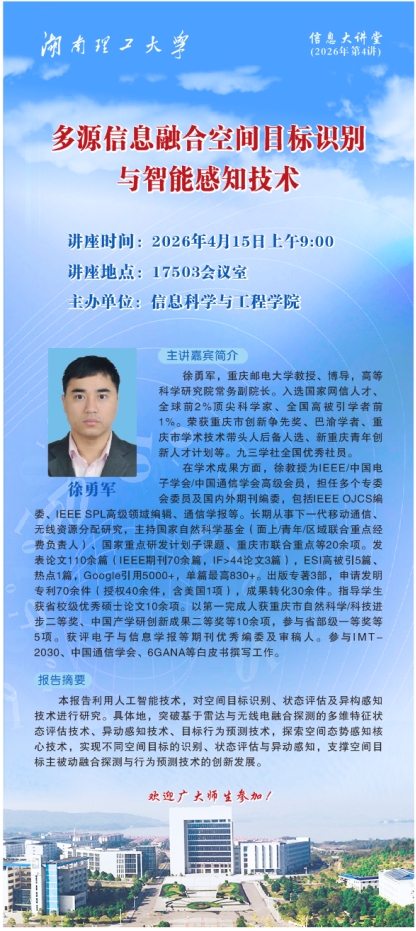 徐勇军教授:《多源信息融合空间目标识别与智能感知技术》