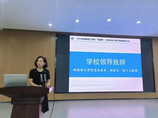 学校党委委员、副校长徐小立出席颁奖大会并发表讲话,她对本次大赛圆满举办表示祝贺,期待同学们在接下来的省赛和国赛中取得更优异的成绩,同时感谢炫通公司对比赛的大力支持。并希望永利皇宫官方网站继续发扬“服务于国家,解决‘卡脖子’问题,培养学生实践创新能力”的传统,使学校的人才培养,科学服务经济社会发展的能力更上一层楼。