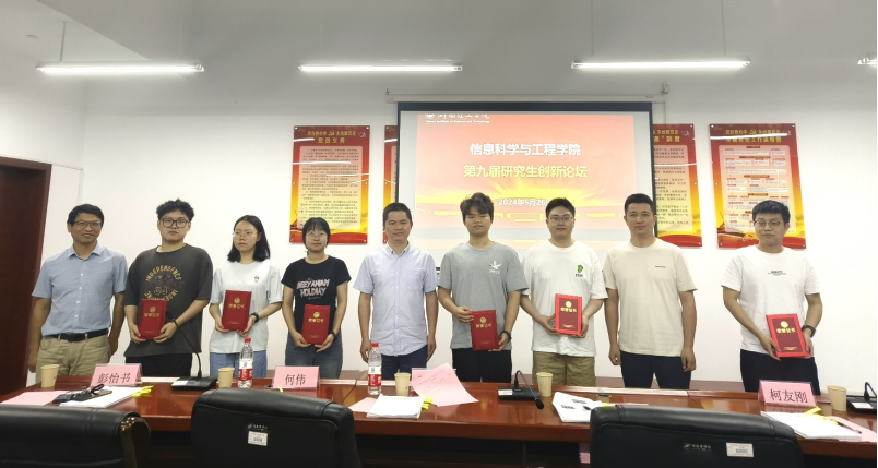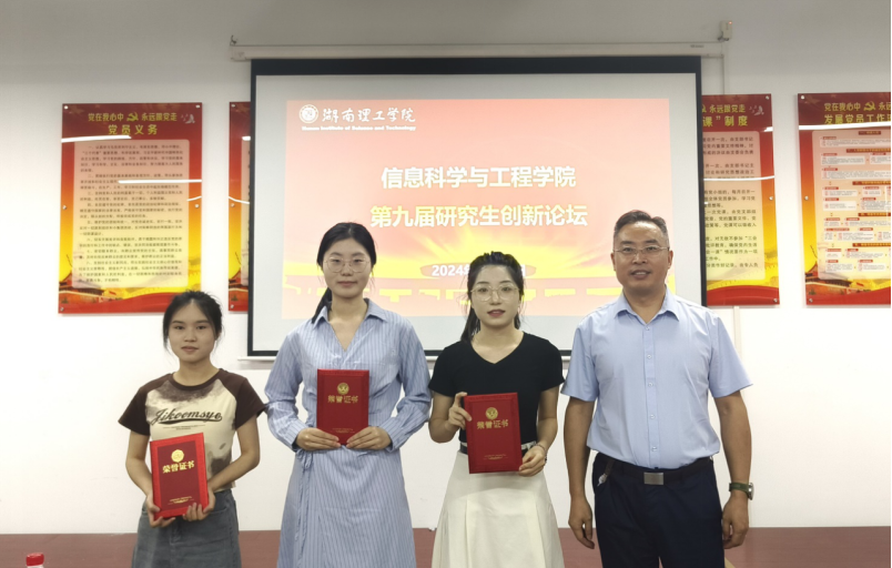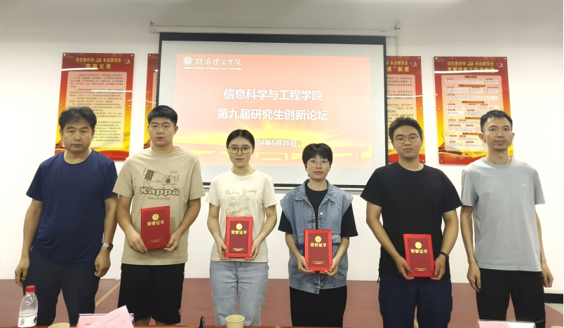论坛最后对参赛作品进行了评比,共评选出一等奖3项,二等奖4项,三等奖6项。在颁奖环节中,评委老师代表对优秀论文的获奖者进行了表彰并与其合影留念。其中,获一等奖的分别是:周珊《基于旋转矢量的直接转矩控制稳态性能的改进》、罗天《多模态状态空间模型的遥感图像融合分类方法研究》和朱甜甜《像素与超像素融合的图卷积对抗防御网络》。