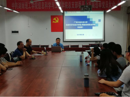 2018年5月17日晚7点,广东外语外贸大学语言工程与计算重点实验室主任李心广博士莅临永利皇宫官方网站,为学院做2019年广外大学硕士研究生招生宣讲介绍。大会由学院党总支书记张泰来主持,物电学院光学研究所所长陈敏教授、考研专干许邕子出席,15级25名学生代表参与聆听本次宣讲会。