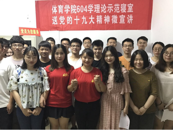 5月15日晚七点,永利皇宫官方网站学生党支部于17号公寓楼学理论特色成长辅导室开展了党的十九大精神微宣讲活动,学院党总支副书记徐丹、体育学院党总支副书记喻俊出席,体育学院604学理论示范寝室代表全丽英和田颖受邀为本次活动做宣讲,院学生第一支部书记徐照清主持。