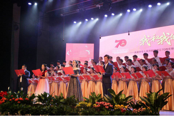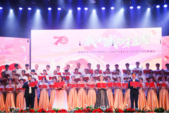 2019年9月29日19:00,为庆祝中华人民共和国成立70周年,大力弘扬以爱国主义为核心的伟大民族精神,永利皇宫官方网站师生积极参加在东院演播厅举办的 “我和我祖国”师生朗诵会。