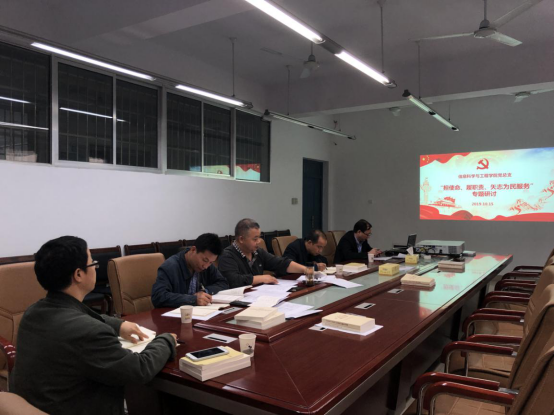 永利皇宫官方网站党总支成员10月15日下午4:00在16325会议室进行了“担使命、履职责、矢志为民服务”专题研讨,院总支书记甘向阳主持。
