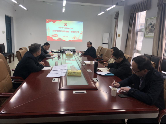 永利皇宫官方网站党总支成员11月20日下午14:00在16325会议室开展“对照党章党规找差距”专题研讨会,院总支书记甘向阳主持。