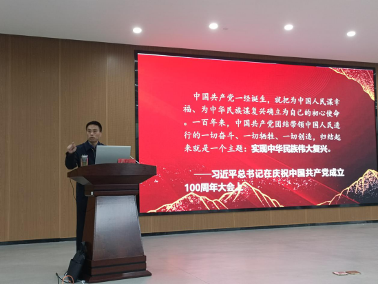 张国云围绕“实现中华民族伟大复兴是中国共产党的初心使命”展开讲述。他结合时事、旁征博引,向同学们介绍了中国共产党团结带领中国人民不懈奋斗的光辉历程,讲述了中国共产党百年来的伟大成就,让在场师生从中国共产党的百年奋斗中看清楚过去我们为什么能够成功、弄明白未来我们怎样才能继续成功,从而在新的征程上更加坚定、更加自觉地牢记初心使命、开创美好未来。