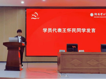 王怀民同学作为学员代表发言,他以习近平总书记在党的二十大开幕会上对广大青年的期望为切入点,与大家分享作为大学生参加党课培训的意义与责任,同时代表全体学员向党组织作出表态,将严格遵守学习纪律,以实际行动向党组织靠拢。