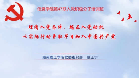 夏玉宁从“为什么选择入党”、“如何行动才能入党”、“当代大学生的责任和使命”三个方面为同学们讲解如何理清入党条件,端正入党动机,如何以实际行动争取早日加入党组织的怀抱。夏玉宁在讲解入党动机时,向同学们提出了“入党是真的想为人民服务吗?”“真的愿意为共产主义事业奉献自己吗?”“真正理解共产主义吗?”“主动学习了解过党章和党史吗?”“能够发挥党员的作用吗?”“能够遵守党的纪律要求吗?”六个问题,引发了同学们深刻的认识与思考。