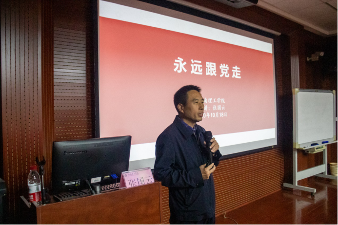 张国云以《永远跟党走》为题,从“为什么要入党”、“入党后怎么做”两个方面展开讲述。他深入浅出地介绍了中国共产党的光辉历史和中华人民共和国的发展史。他强调,广大学生应坚持党的绝对领导、坚定理想信念,做到理想信念不滑坡、革命意志不动摇,希望各位同学应从现在做起,从身边的每一件具体小事做起,为实现中华民族伟大复兴的中国梦不懈奋斗。