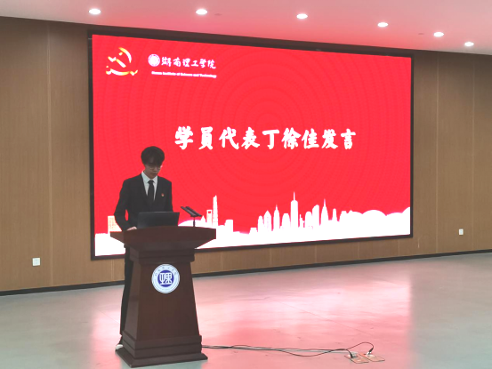 开班仪式上,学院党委书记甘向阳为学员们做动员讲话,希望同学们端正态度,认真对待每一堂党课,按照一名党员的标准严格要求自己,在学习、工作和生活中做出成绩,自觉为党的路线和纲领而奋斗。丁徐佳同学作为本期培训班学员代表发言,表决心、亮态度。