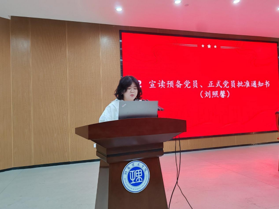 新党员宣誓大会在《国际歌》声中拉开帷幕。刘照馨宣读预备党员、正式党员批复,王艳芬带领全体新党员面向党旗宣誓。