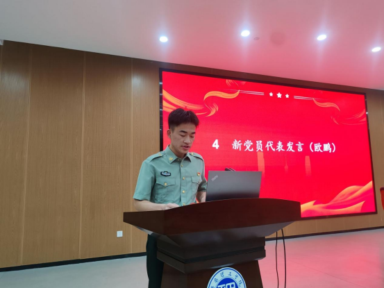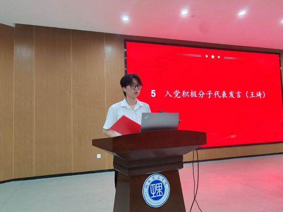 宣誓结束后,新党员代表欧鹏结合自身经历,从作为一名大学生的价值、党员的价值以及新时代中国青年的价值三个方面分享了心得感悟;入党积极分子代表王琦讲述了自己真正了解并想要加入共产党的过程,从不断学习、做好榜样、服务他人三个方面讲述自己的做法,以在座的党员为榜样继续努力,争取早日加入党组织。