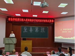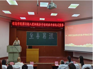 2025年4月23日晚,永利皇宫官方网站第52期入党积极分子培训班开班仪式暨第一讲在6栋教学楼学术报告厅举行。学院党委书记肖迎群、学院党委副书记付亚子出席,学院各学生党支部书记、全体学生党员、第52期入党积极分子培训班学院参加。开班仪式由学院组织员刘照馨主持,培训班第一讲由学院党委书记肖迎群主讲。