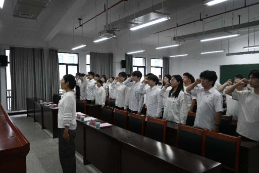 在学生第一支部书记王艳芬的带领下,新党员们面向鲜红的党旗,举起右拳,进行了庄严宣誓。铿锵有力的誓言在会场回荡,表达了新党员们对党的忠诚与为共产主义事业奋斗终生的坚定决心。