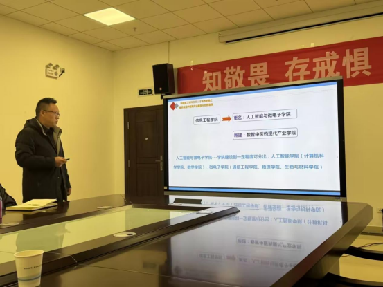 程文波围绕学院学科专业设置、师资力量、研究生培养体系及特色成果等方面进行了全面介绍,展现了学院在交叉学科建设与人才培养上的探索与成效。