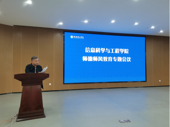 此次师德师风教育专题会议的举行,重在倡导教师加强师德修养,坚持教书和育人相统一,坚持言传和身教相统一,坚持潜心问道和关注社会相统一,坚持学术自由和学术规范相统一,引导教师以德立身、以德立学、以德施教。