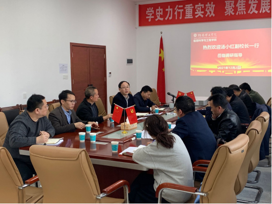 12月2日下午,副校长汤小红带队一行7人到永利皇宫官方网站调研指导,陪同的有科技处处长侯朝辉、科技处副处长杨志和、研究生院副院长吴健辉、产学研合作办公室主任许怡学等。永利皇宫官方网站院长童耀南,副院长涂兵、刘钢,和刘靖教授、谢文武副教授等科研骨干参加了座谈交流。