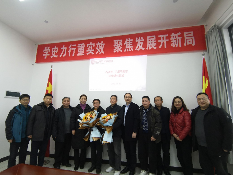 为弘扬优良师德师风,营造尊师重教良好氛围,1月20日下午,永利皇宫官方网站在17号楼517会议室为石炎生和丁卓平老师举行荣休仪式,学院班子成员和荣休老师所在教研室主任参加仪式。仪式由院分工会主席刘钢主持。