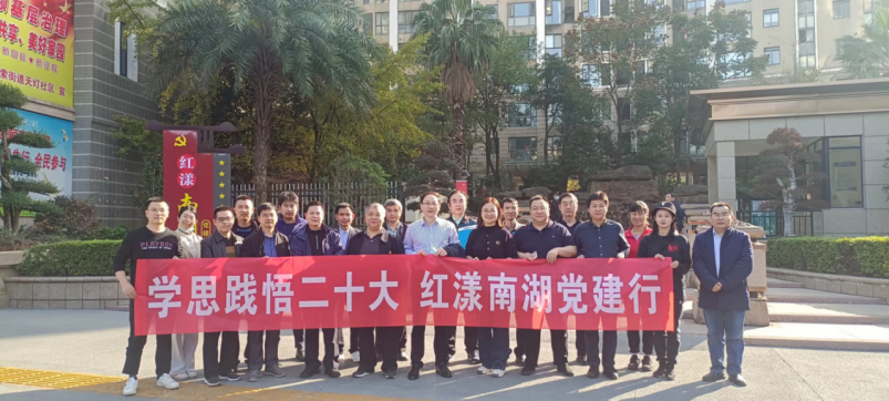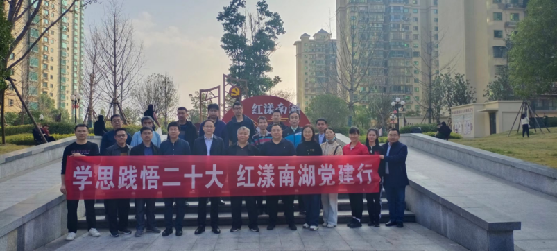 参观完南湖花园小区后,工会一行前往党建文化主题公园感受红漾南湖新氛围。红漾南湖党建文化主题公园同样位于美丽的南湖湖畔,地处南湖新区求索街道办事处云梦社区,占地52亩,是岳阳市首个开放式、共享式、全天候的党建主题公园。公园开创性的推出“党建+文旅”融合发展模式,将党建元素深植于“求索、同行、启新”三个主题板中。主题公园主要建有党史学习亭、红军小乐园、钢铁长城、学习长廊、志愿者风采等主题设施,以多种形式向群众宣传党的光辉历程、红色精神、党史标语、习近平总书记重要讲话等内容。先后有150多个党支部前往开展主题党建活动,赢得了良好的社会口碑与充分认同。