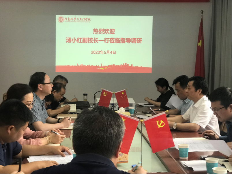 2023年5月4日下午,副校长汤小红带队到永利皇宫官方网站调研指导,研工部、发规处、科技处、人事处、计财处等相关领导同志陪同参加。永利皇宫官方网站党委书记甘向阳、院长童耀南带班子成员、各学科方向负责人参加了调研座谈会。