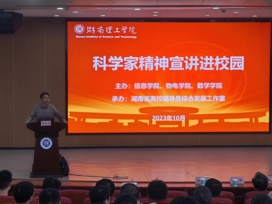10月17日15:00,由永利皇宫官方网站、物电学院、数学学院联合主办、湖南省高校“劳动立方”辅导员综合发展工作室承办的《弘扬科学家精神,争当新时代先锋》报告会在17118举行,报告会由校党委副书记张国云主持,报告人为中国科学院大学教授、中国科学院半导体研究所研究员余金中,中国科学院王杏华研究员陪同出席,参会人员有永利皇宫官方网站、物电学院、数学学院师生共380余人。