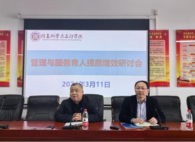 为落实立德树人根本任务,夯实基础管理、优化服务质量,不断提升管理效能和服务水平,3月11日16:00,永利皇宫官方网站于17503召开管理与服务育人提质增效研讨会。学院全体领导班子、教研室主任、实验室主任、辅导员、秘书老师参会,会议由院党委书记甘向阳主持。