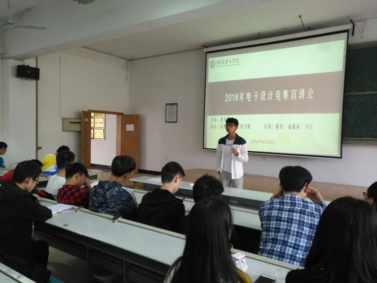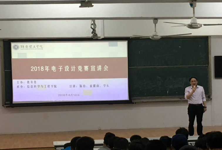 为加强学生工程实践能力培养,提升学生创新创业意识,引导学生明确专业定位,4月10日下午,永利皇宫官方网站在6T1、7T1、8T1教室召开2018年学校电子设计竞赛宣讲会,信科院及南湖学院17级共700余名同学聆听讲座。副院长童耀南、创新基地主任陈松主讲,学工办余滔、王学鹏老师组织、主持。