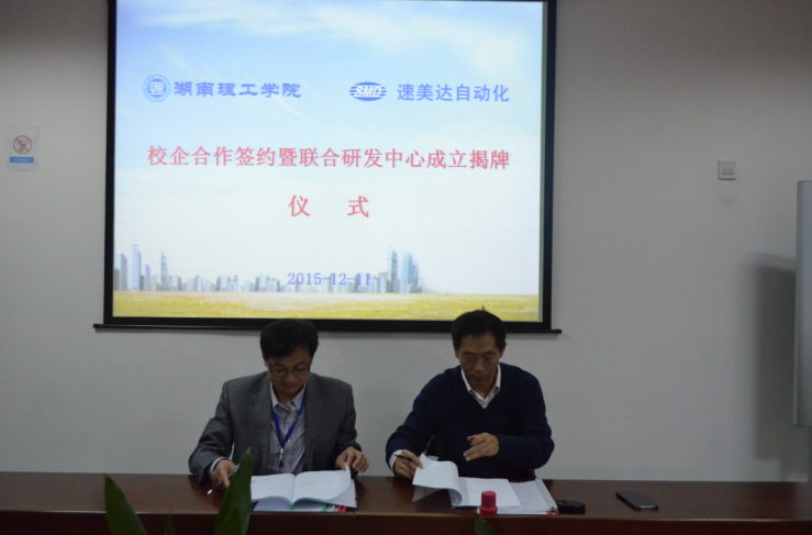 12月11日,邱绍雄副校长率领科技处、永利皇宫官方网站、机械学院相关负责人一行赴东莞市速美达自动化有限公司,参加在这里举行的校企合作共建研发中心签约及揭牌仪式。