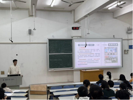 会议主要围绕全国大学生系列科技学术竞赛“挑战杯”展开,介绍其发展背景、类别、流程以及赛事价值,让同学们对竞赛有了更深层次的了解,同时以李敏佳同学负责的“渔光智控”项目为实例,展现了学生们的魅力风采和家国情怀。