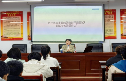 为帮助大学生提升求职能力,永利皇宫官方网站于11月12日晚在17503教室开展“湖鲤金牌计划”求职能力训练营第二讲,主讲人薛静以面试实践技巧为核心,带来干货十足的求职指导。