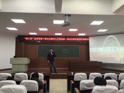 4月10日下午2:30,由移动互联创客团队主办的关于“‘新工科’改革背景下移动互联人才的培养”招新宣讲会于六号楼学术报告厅召开。团队带头人李育森老师主持会议,会议由团队管理学生培训工作的刘胜钢老师主讲,信科学院学工办教师周煊阳、王学鹏及17级计算机类专业学生参加会议。