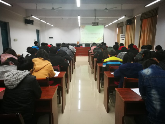 为学习宣传党的十九大会议精神,2017年12月18日下午两点半,永利皇宫官方网站党支部书记张泰来教授于16410为学院第37期近80名入党积极分子作关于“党的十九大精神辅导学习”的党课培训讲座,学院全体辅导员参加,讲座由刘盈盈老师主持。