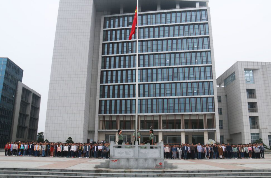 2017年10月9日早上7时10分,永利皇宫官方网站在国旗广场隆重举行庆祝国庆68周年升旗仪式。全院1792名学生汇集广场,校党委学工部副部长毛伟、永利皇宫官方网站院长李武、副院长彭鑫、党总支副书记徐丹及学工办全体辅导员出席仪式。
