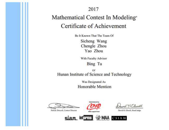 4月8日,2017年美国(世界)大学生数学建模竞赛获奖结果揭晓,由永利皇宫官方网站学生王思成、周承乐、周瑶组成,涂兵博士指导的参赛队伍斩获1项国际二等奖,实现了我校学生在该项目上零的突破。4月11日,我们有幸采访了这个获奖团队以及他们的指导老师涂兵。