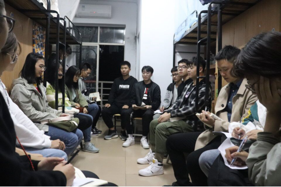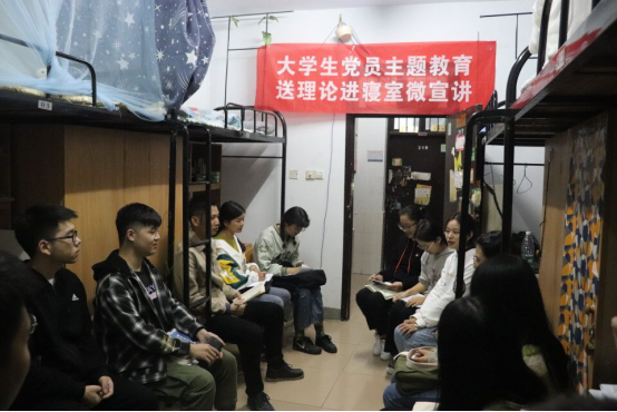 10月31日19:30,体育学院党总支书副书记喻俊、辅导员易薇、黄志带领体育学院604学理论示范寝室学生代表邓娟、吴平及化工学院学生代表姚蕾组成的“不忘初心、牢记使命”学理论微宣讲团,深入永利皇宫官方网站13栋217党员寝室开展“精准扶贫,脱贫攻坚”微宣讲活动,永利皇宫官方网站辅导员王学鹏、荀仕杰出席,16级部分党员代表参加。