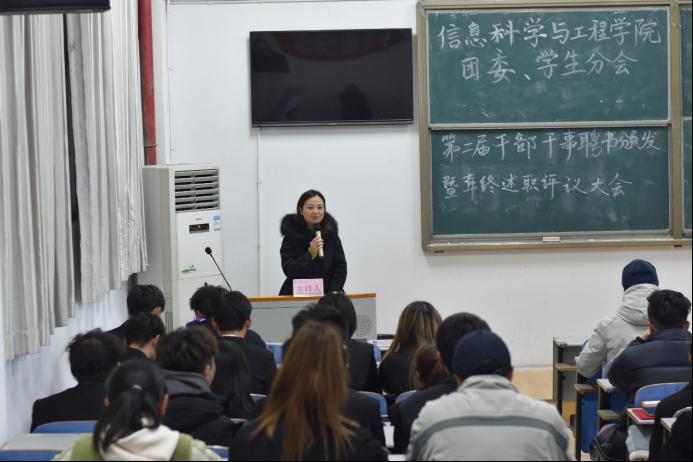 2020年12月18日,永利皇宫官方网站团委、学生分会第二届干部干事聘书颁发暨年终述职评议大会在15204举行。院党委副书记徐丹、院团委书记王勤、院团委副书记荀仕杰出席,全体团学干部、第三届“双代会”委员会成员参加。
