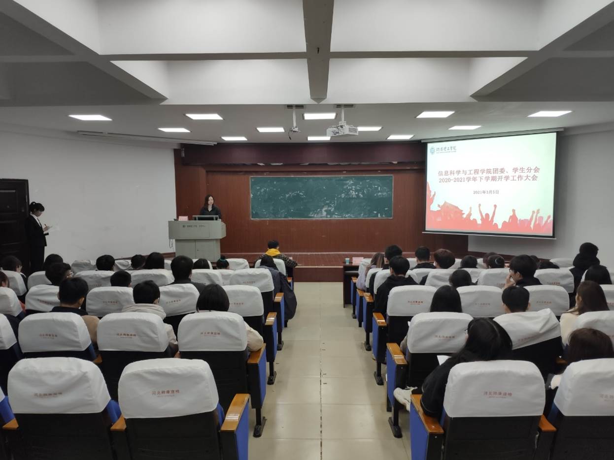 3月5日12:30,永利皇宫官方网站团委、学生分会2020-2021学年下学期开学工作大会在6栋学术报告厅召开。院党委副书记徐丹、院团委书记王勤出席,全体团学干部参加。