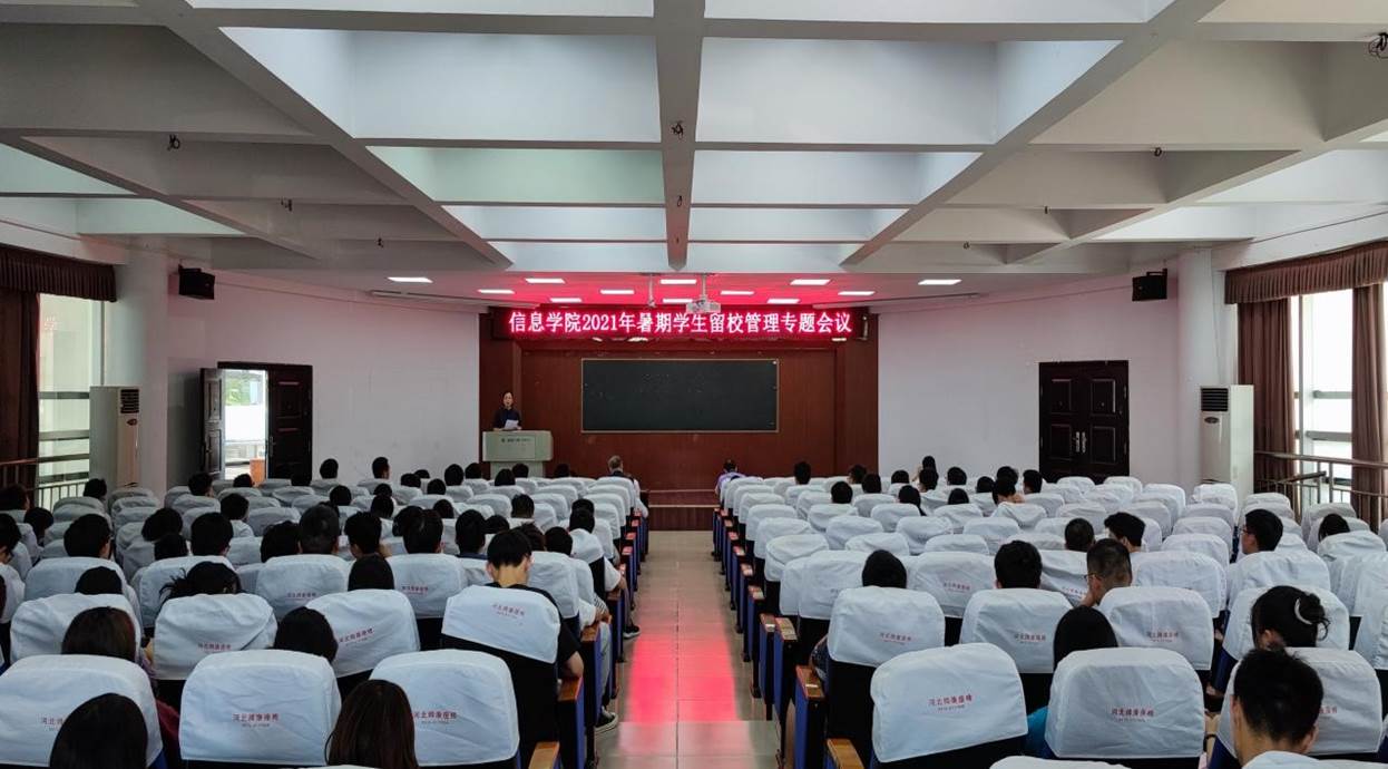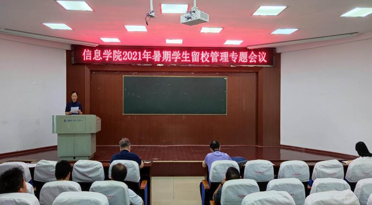 为保障暑期留校工作顺利开展,7月12日15:00,永利皇宫官方网站召开2021年暑期学生留校管理专题会议,院党委书记甘向阳、院长童耀南、党委副书记徐丹、副院长严权峰、院长助理涂兵,各实验室指导老师,学工办主任荀仕杰,辅导员李亦波出席,全体留校学生参加会议。