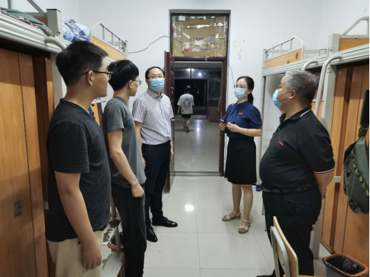 9月11日晚,永利皇宫官方网站院长童耀南、党委书记甘向阳、副书记徐丹带领辅导员老师、班主任深入本科生、研究生新生寝室走访看望。老师们与新生面对面交流,询问进入大学校园的感受,第一次出远门是否适应,校园报到等手续办理是否顺利等。