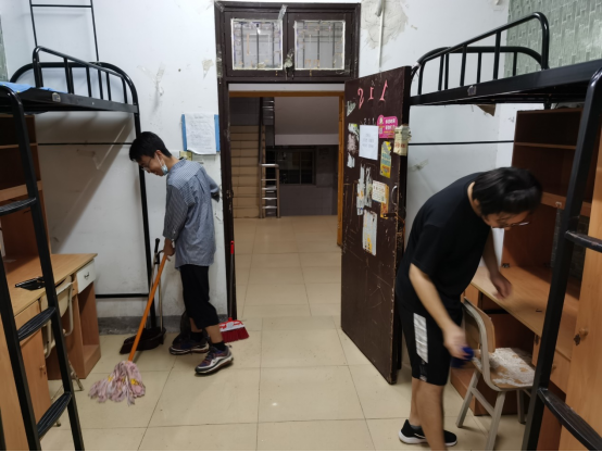 为迎接即将到来的21级学弟学妹,同学们自备工具,对新生寝室、宿舍楼道等地方开展清扫工作。劳动期间,合理分工、相互配合,以饱满的热情,认真的态度参加劳动,将新生宿舍里里外外打扫得一尘不染。