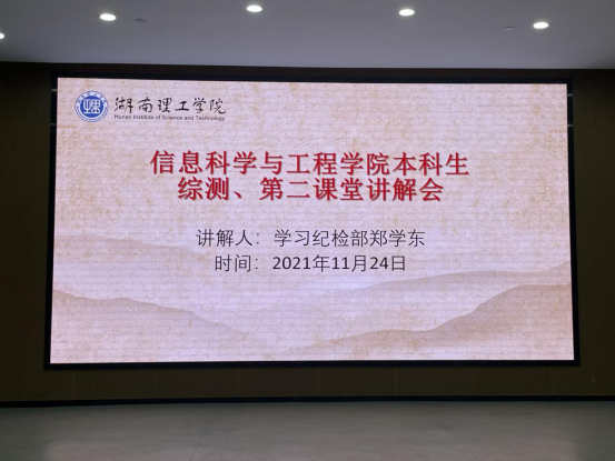 11月24日20:00,永利皇宫官方网站在17118教室针对新生开展《综合测评细则》及第二课堂相关规定讲解会。21级辅导员王学鹏、余滔出席,学习纪检部郑学东及素质拓展部刘影主讲。