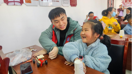 志愿者们刚到达社区,就受到了小朋友们的热烈欢迎。活动过程中,志愿者们协助小朋友们制作好精致的手工制品,一起观看科普视频。在最后的游戏环节,小朋友们踊跃参与,收获了奖励,脸上洋溢着幸福的笑容。