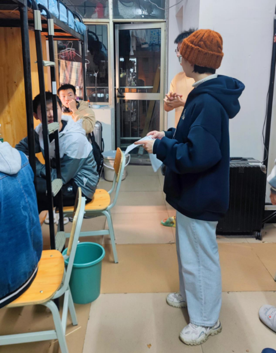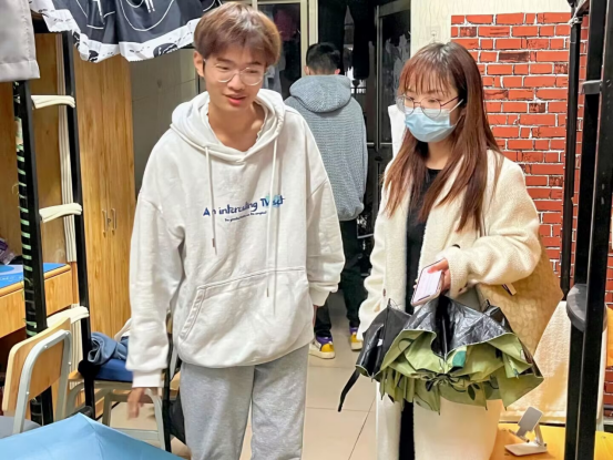 在走访过程中,张佳明和徐壮就学风建设、疫情防控、安全隐患、生命和财产安全等方面与学生们交流,了解学生们的学习和生活情况,并强调同学们需严格遵守学校规章制度,严格履行请假销假审批手续,非必要不外出,严禁使用任何违规电器,同时,她们还叮嘱同学们:秋冬季节较为干燥,昼夜温差大,要注意用火用电安全,适当添加衣物,注意保暖。