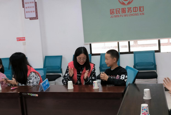 在志愿者们的协助下,小朋友们大胆发挥自己的想象,与志愿者相互协作完成了有创意的手工作品。随后,志愿者与小朋友们一起学习了杯子舞,观看了科普视频,活动过程中,小朋友们踊跃参与,气氛欢乐融洽。