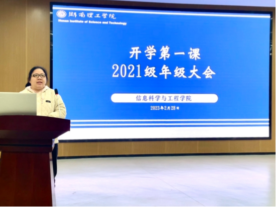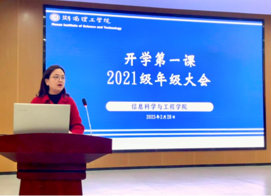 徐丹首先分享了就业率和入学率两组数据,强调当代大学生对于自身能力的培养。其次她鼓励同学们贯彻落实好习总书记的殷切嘱托,争做“有理想、有担当、能吃苦、肯奋斗”的新时代好青年。最后她向大家提出四点希望:第一、总结昨天,把握今天,展望明天;第二、学会成人,逐渐成才,迈向成功;第三、坚持实干,加以巧干,实现能干;第四、树立自信,坚持自立,学会自强。