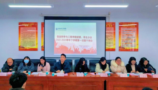 3月1日12:00,永利皇宫官方网站于17503召开2022-2023学年下学期第一次团学例会。院党委副书记徐丹,团委副书记张佳明以及全体辅导员出席。会议由张佳明主持,全体团学干部、干事参会。