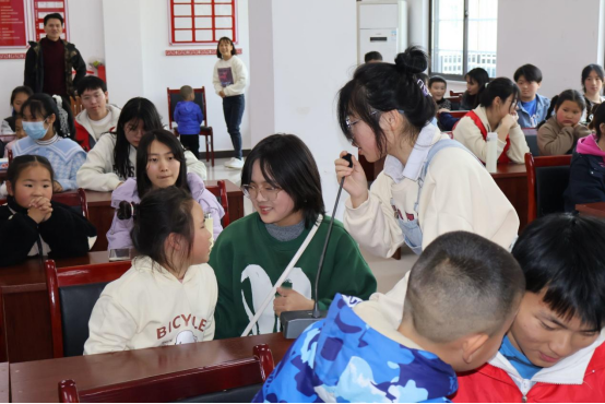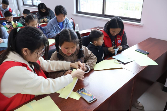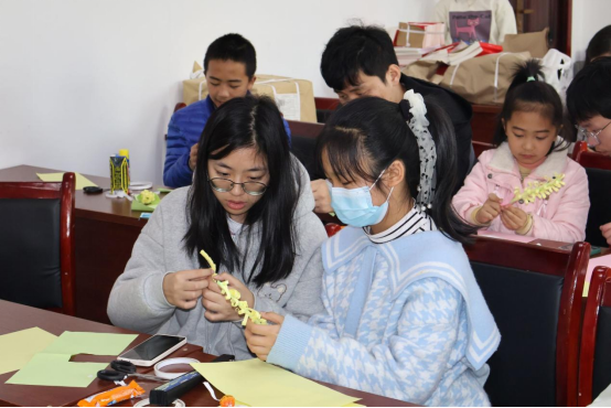 活动中,志愿者带领着孩子们一起看视频了解春分、背春日古诗、制作春花手工。孩子们从志愿者口中了解春日特点、感受春日文化、领略春日美丽;和小伙伴们一起发挥想象,装饰自己手中的花朵,细心剪出花边、小心涂画颜色、精心挑选绿叶……原本朴素的纸张在孩子们的手中变成了一朵朵鲜活的春花。随后,志愿者们还和孩子们一起在户外游戏,院子里充满了欢声笑语。