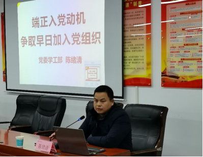 陈绪清结合国家与社会发展历程、当前国内外形势以及自身丰富的学生工作经验,通过生动且深刻的历史英烈和时代先锋故事、社会热点现象、学生工作正反面案例,向同学们系统讲授了端正入党动机的三个重要性、四个基本要求、三个实际行动。