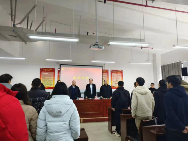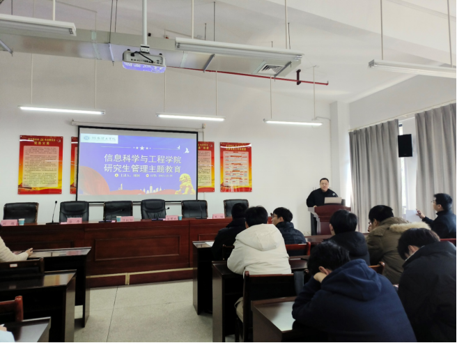 会议伊始,师生共同唱响国歌。随后,童耀南以“面向经济主战场的地方高校信息学科硕士研究生培养模式探索”为题,深入浅出地阐述职业规划的重要性,并针对学术科研道路和行业就业两个方面从学校学科基本情况、校企合作的培养模式、学院培养成果等三个层次给予了细致的介绍和指导。他强调:研究生应明确自己的未来发展方向,积极参与创新创业教育,通过实践与研究,培养自己的创新意识和能力。